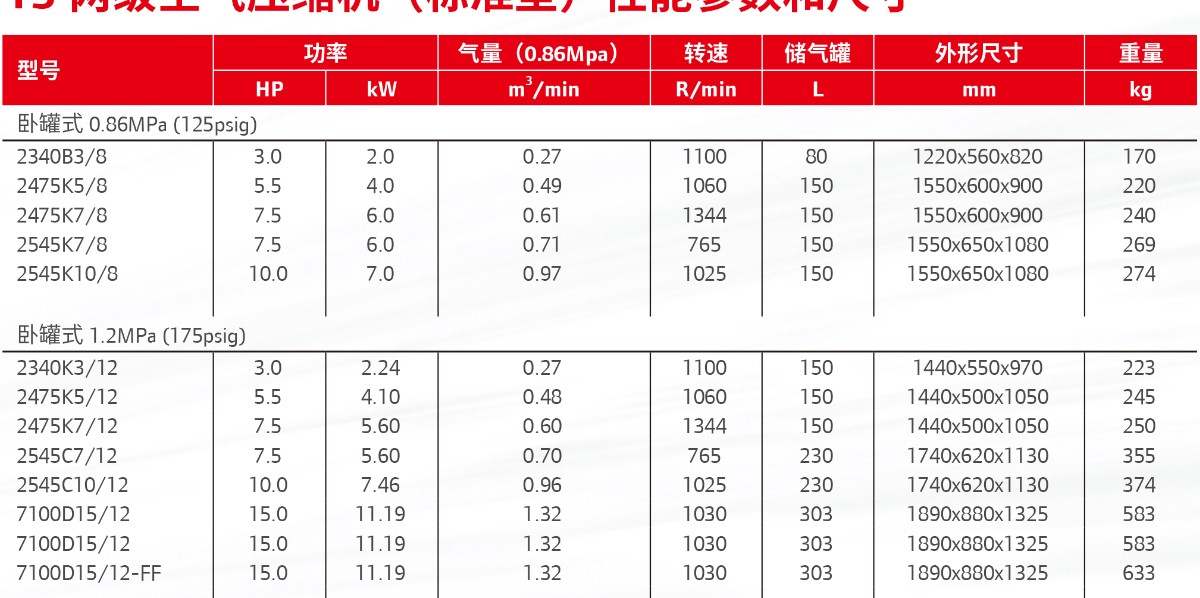 排氣量:0.085-1.64m3/min