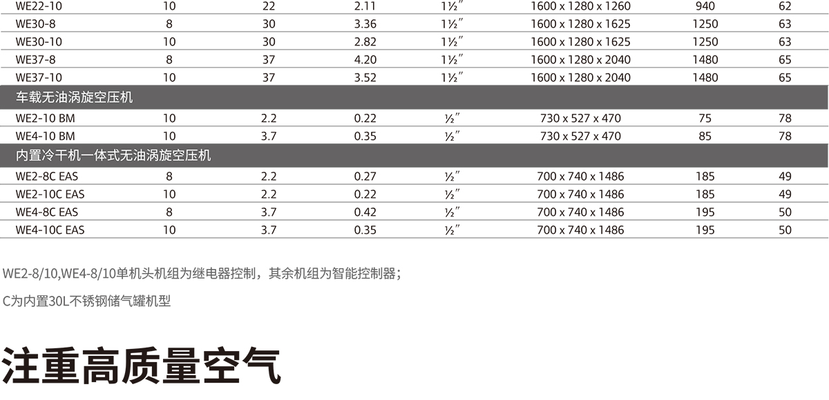 產(chǎn)品名稱:WE系列22-37kW無油渦旋式空氣壓縮機(jī)